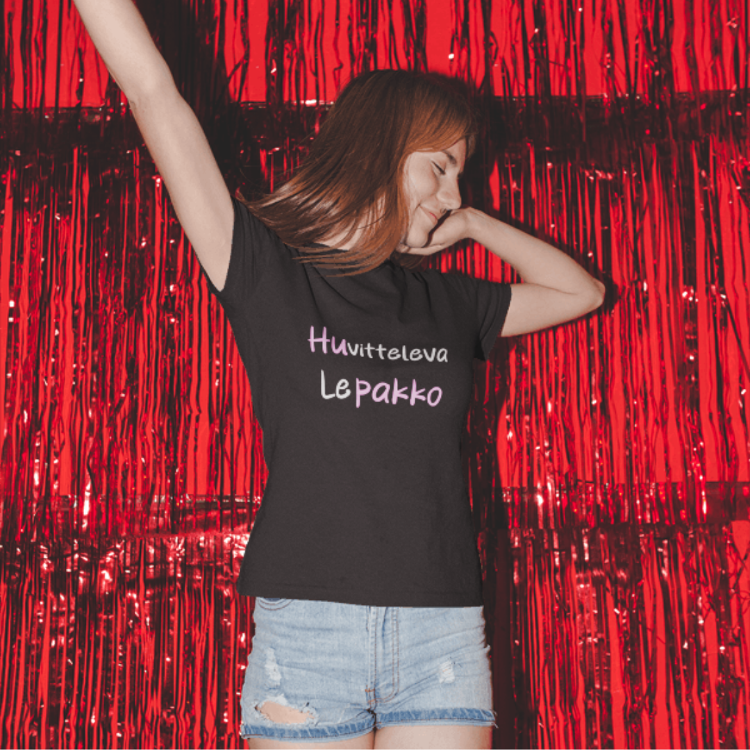 T-paita "Huvitteleva lepakko" sanoja väänteleville hupakoille