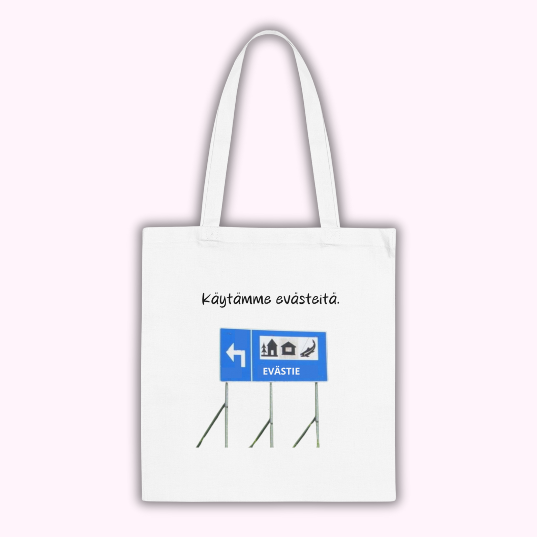 Meidän tuotteissa ei ole mitään päälle liimattua. Sanaleikit, nokkelat läpät ja arkea kutittavat ideat tekevät jokaisesta kangaskassista jotain enemmän kuin pelkän tuotteen. Ne ovat pieniä arjen piristysruiskeita, jotka saavat sinut virnistämään.