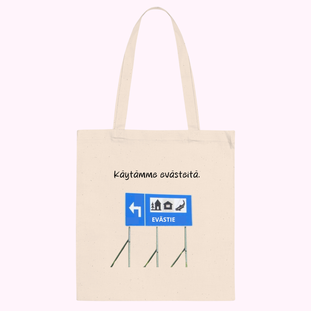 Kestävä kangaskassi, johon mahtuu päiväsi kaikki tarpeet – ja vähän enemmän. Täydellinen arkeen, mökkireissulle tai vaikka spontaaniin seikkailuun, aina pilke silmäkulmassa.