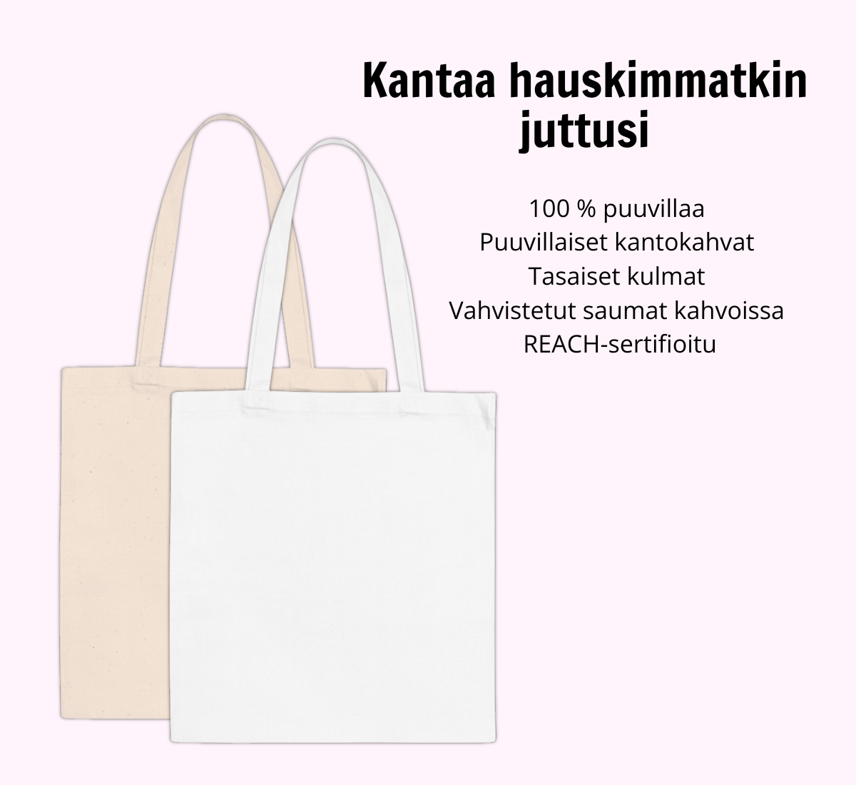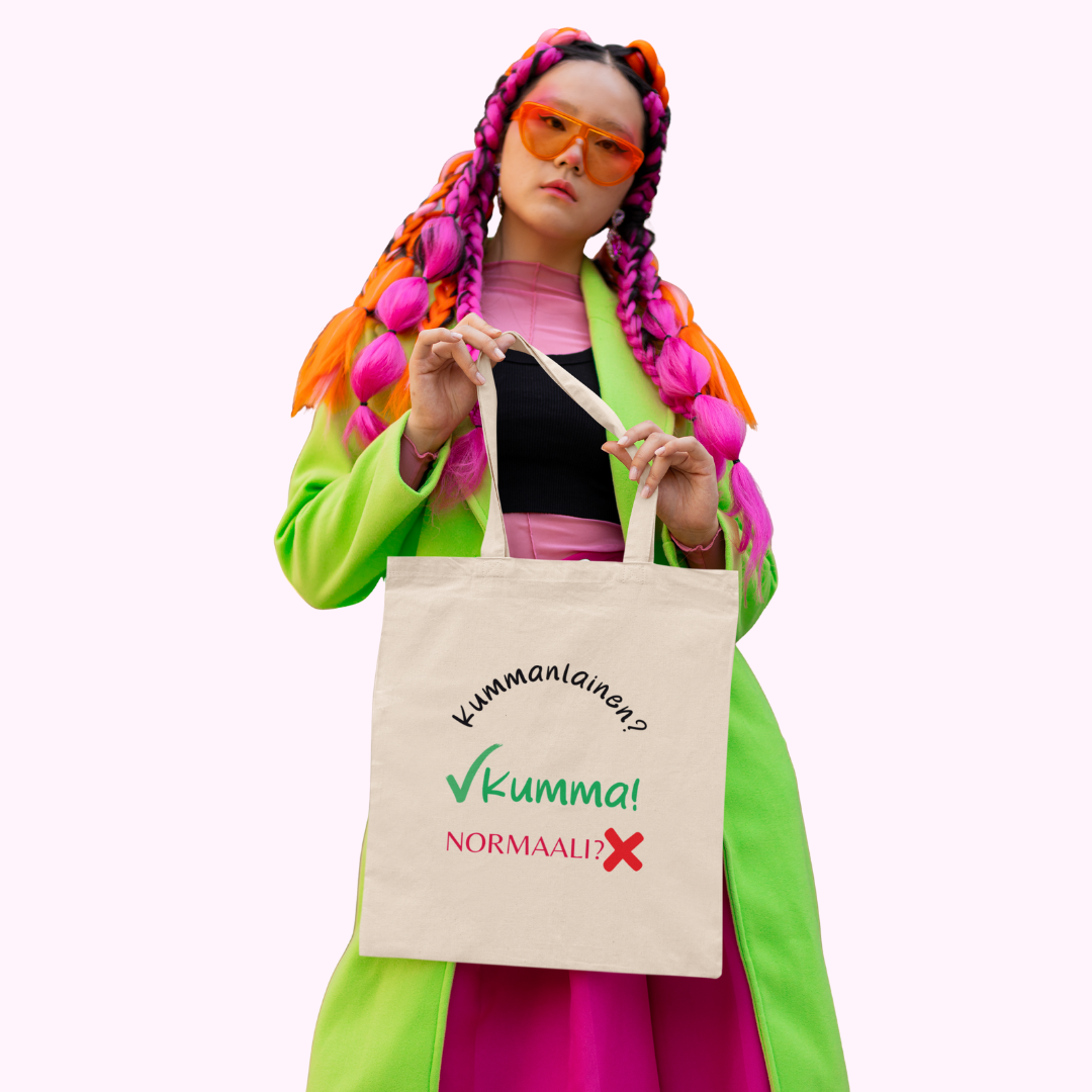 Kestävä kangaskassi, johon mahtuu päiväsi kaikki tarpeet – ja vähän enemmän. Täydellinen arkeen, mökkireissulle tai vaikka spontaaniin seikkailuun, aina pilke silmäkulmassa.